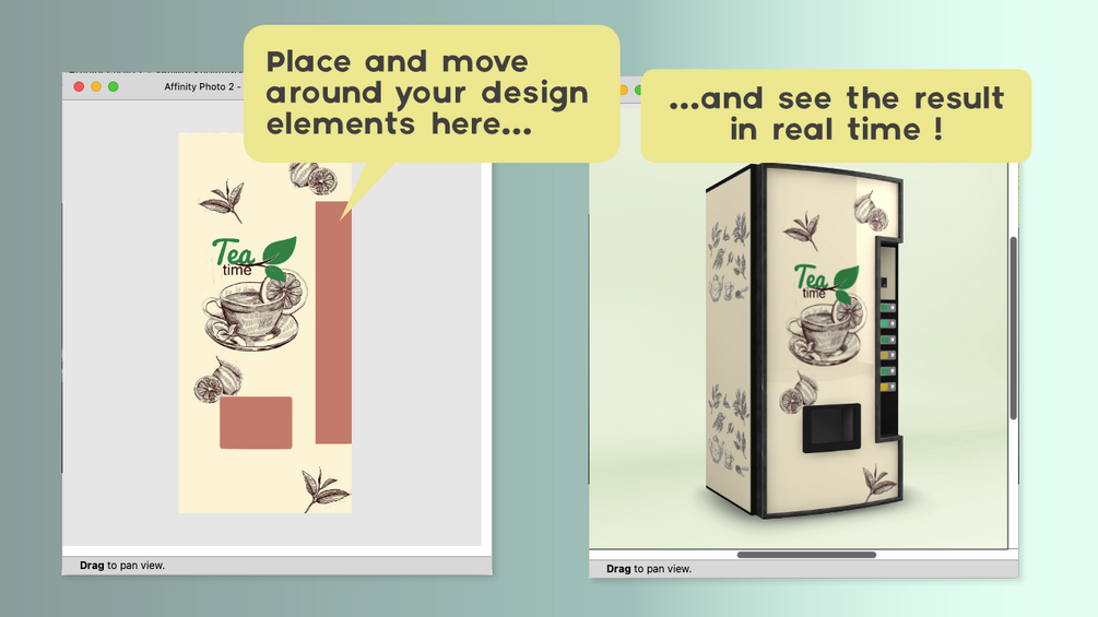 You'll get 3 affinity Photo vending machine mockups whose colors and decoration can be easily customized.